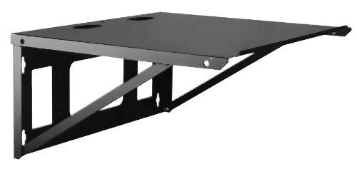 FS Series folds out to open position requires no assembly, supports up to 100 lbs. Installation of Lowells FS Series shelves is literally a snap. The shelf arrives fully assembled in folded position. To mount, simply rotate the rear panel 90 so that the front panel flanges insert into the rear panel cutouts. This fully openservice position will provide secure support for up to 100 lbs. of equipment when properly mounted to the wall. Keyhole mounting slots are on 16 stud centers and are slotted so that the shelf may be inverted to meet application requirements. To facilitate organized wire management and a clean presentation of equipment, the top of the shelf includes two oblong cutouts size 2.5L x 1.25W for cable drop-down. The wall side of the shelf includes a large center opening for versatile wire access and placement over existing outlets and fixtures. Side openings are spaced for single gang, studmounted conduit boxes. Additionally, there are cable lacing points and pre-punched mounting holes between center and side openings to provide field versatility. The shelf also features a front retaining lip that is flanged for strength. Assembly is 16ga CRS with a durable black powder epoxy finish.